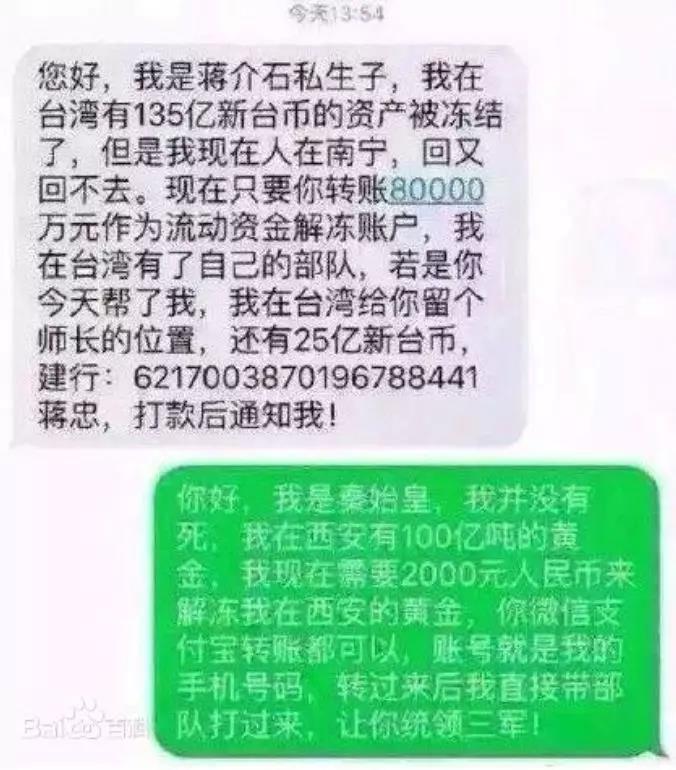 由于骗子实在是无法赶尽杀绝,以至于国内都有了“我,秦始皇,打钱”的梗。