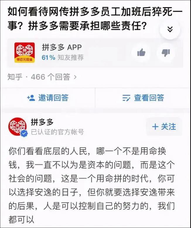 今天,就跟接着聊一聊昨晚在评论区热议的拼多多员工加班猝死,拼多多“临时工”回复的事儿。