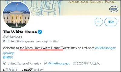近日,白宫的官方网站上开始使用“拜登哈里斯政府”(Biden-Harris Administration)取代“拜登政府”来自我介绍,白宫推特等媒体也随即进行了调整。